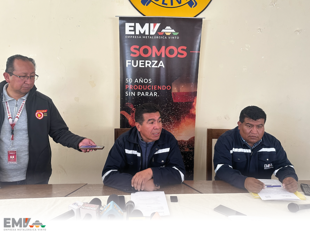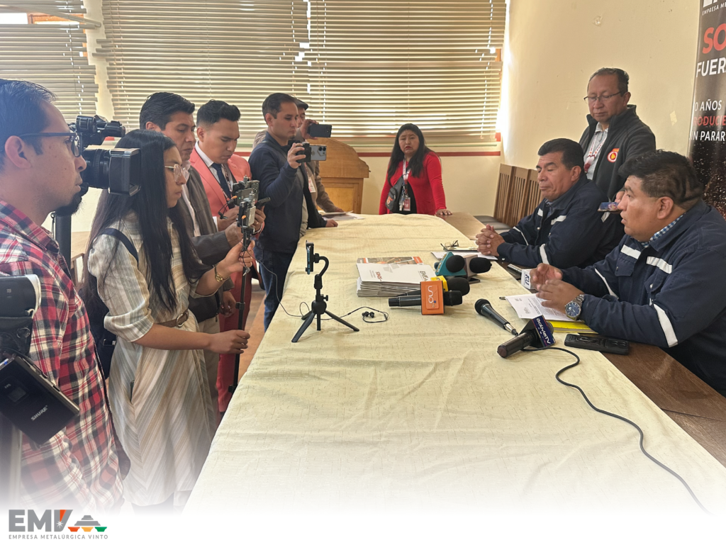 En Conferencia de Prensa realizada hoy, el Gerente Administrativo y Financiero de la Empresa Metalúrgica Vinto, Lic. Víctor Vásquez Rosas y el Jefe de la División de Adquisiciones, Lic. Rodimir Medrano, presentaron la «Feria a la Inversa de Contrataciones de Bienes y Servicios Recurrentes» para la Gestión 2026, que se realizará del 1 al 3 de octubre, en el Coliseo «El Metalurgista – ENAF», carretera Oruro a Cala Cala Km. 7,5 Zona Vinto