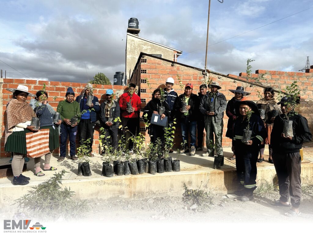 La Unidad de Medio Ambiente de la Empresa Metaúrgica Vinto realizó la entrega de plantines de olmo a los vecinos de la Junta Vecinal Pantaleón Dalence, en la localidad de Vinto. La especie forestal entregada fue producida en los viveros de la EMV, como parte de su programa de mitigación ambiental.
